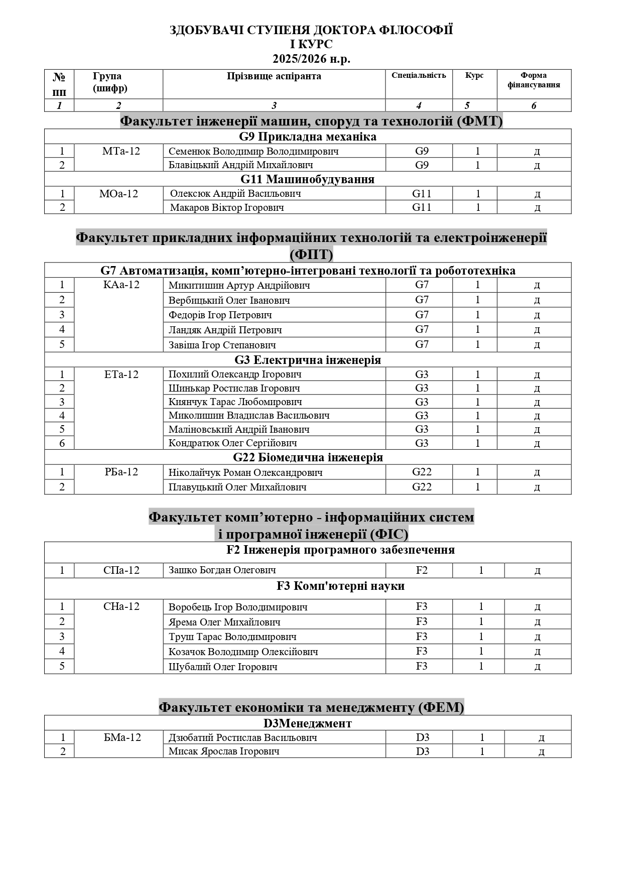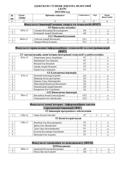 Графік навчальних тижнів на осінній семестр 2025-2026 н.р.